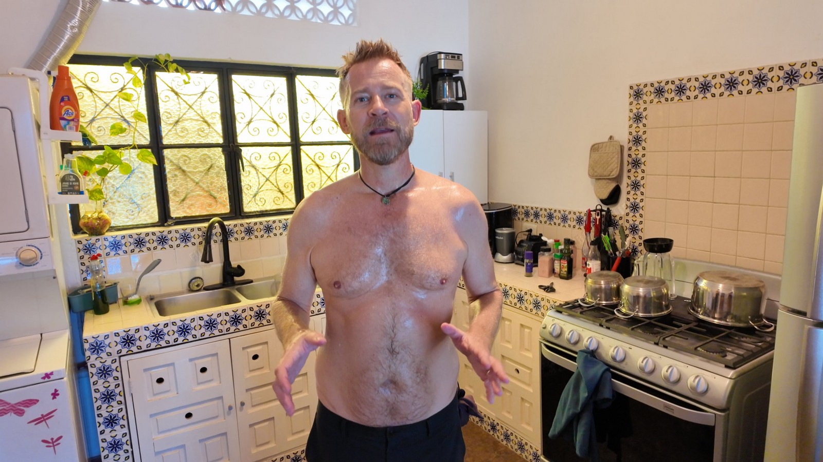 We wrap up back at our place, stripping down to cool off and recover from the heat.